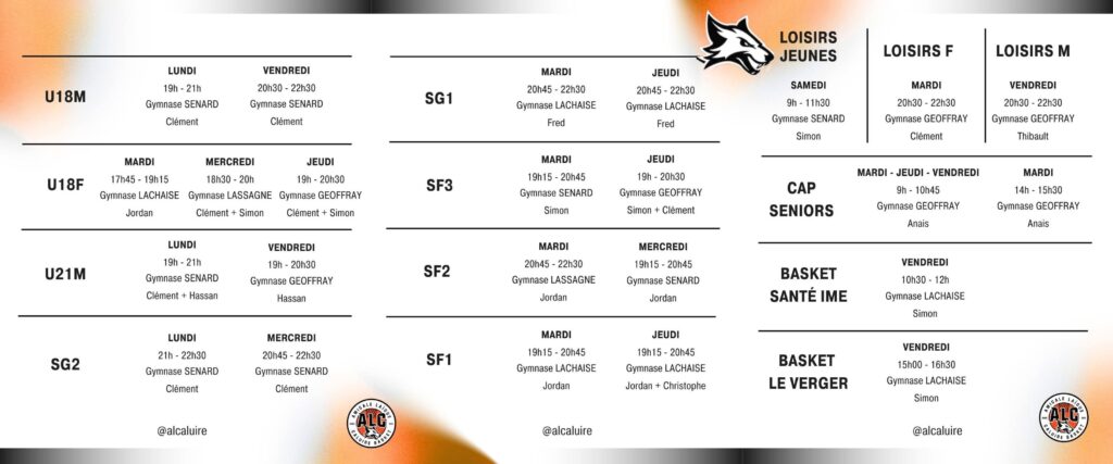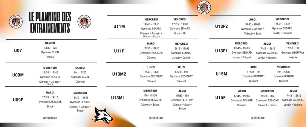 Retrouvez le planning des entraînements pour la saison 2025/2026 ! Début des entrainements le lundi 1er septembre !