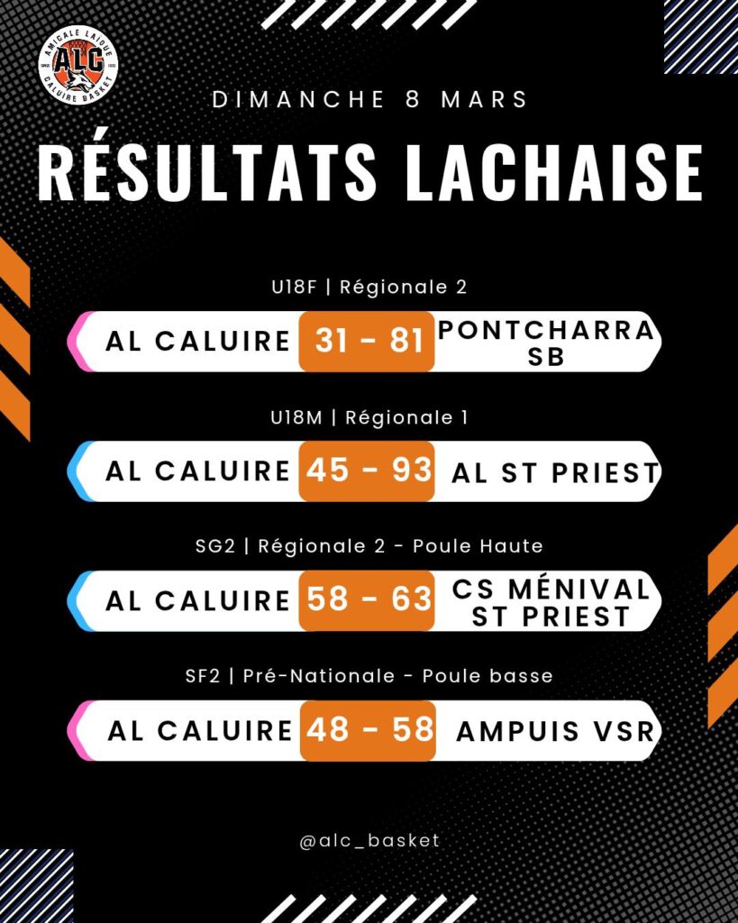 LES RESULTATS DU WEEK-END (7/8 MARS)