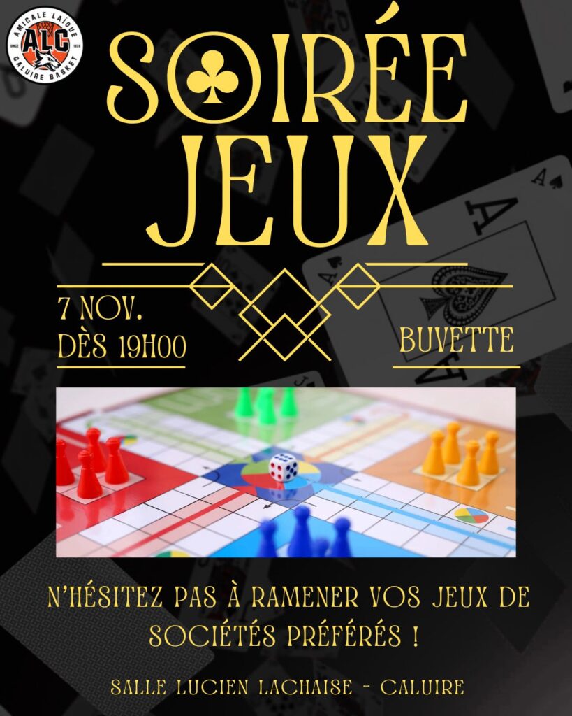 RDV le Vendredi 7 Novembre à partir de 19h pour notre traditionnelle soirée jeux de société ! 🎉